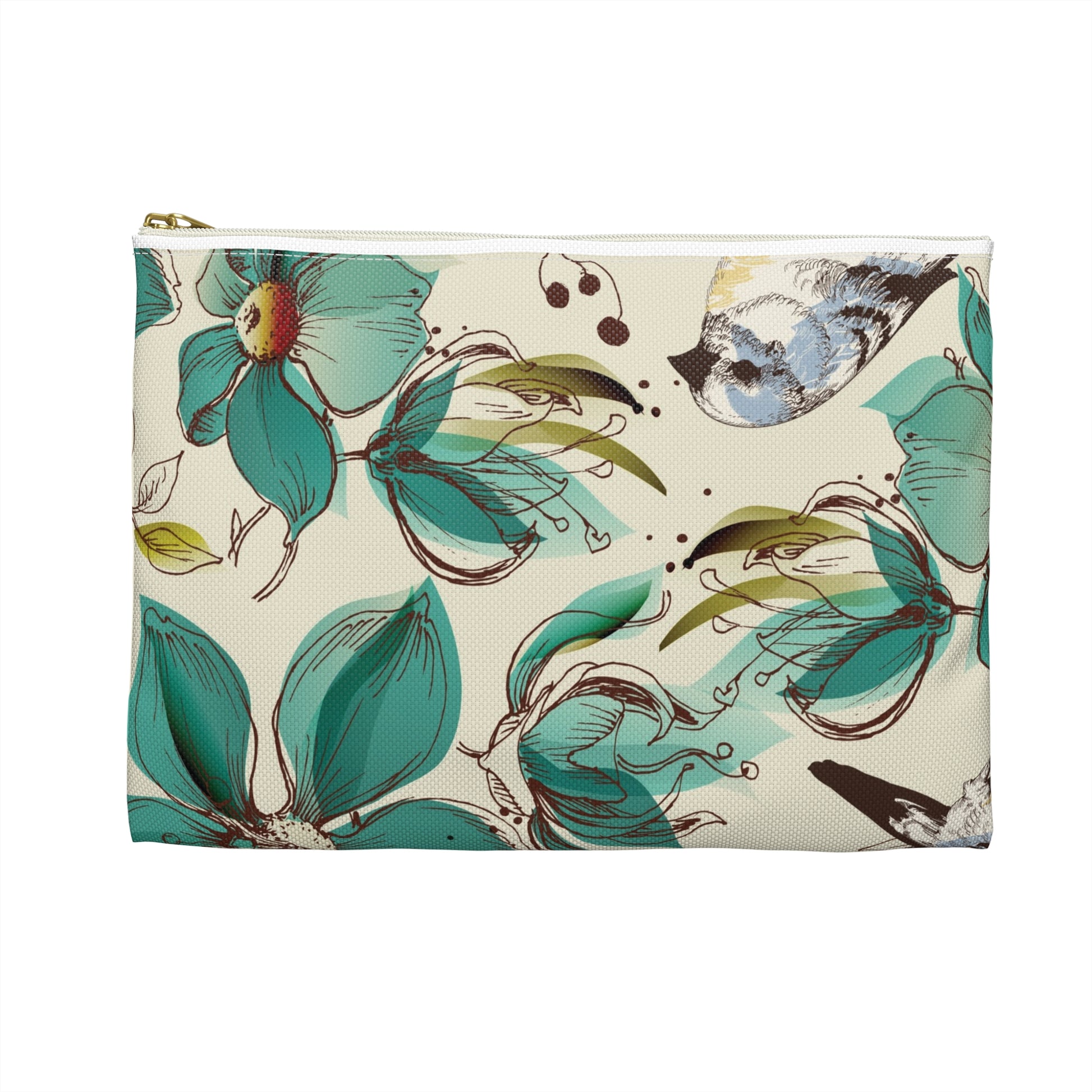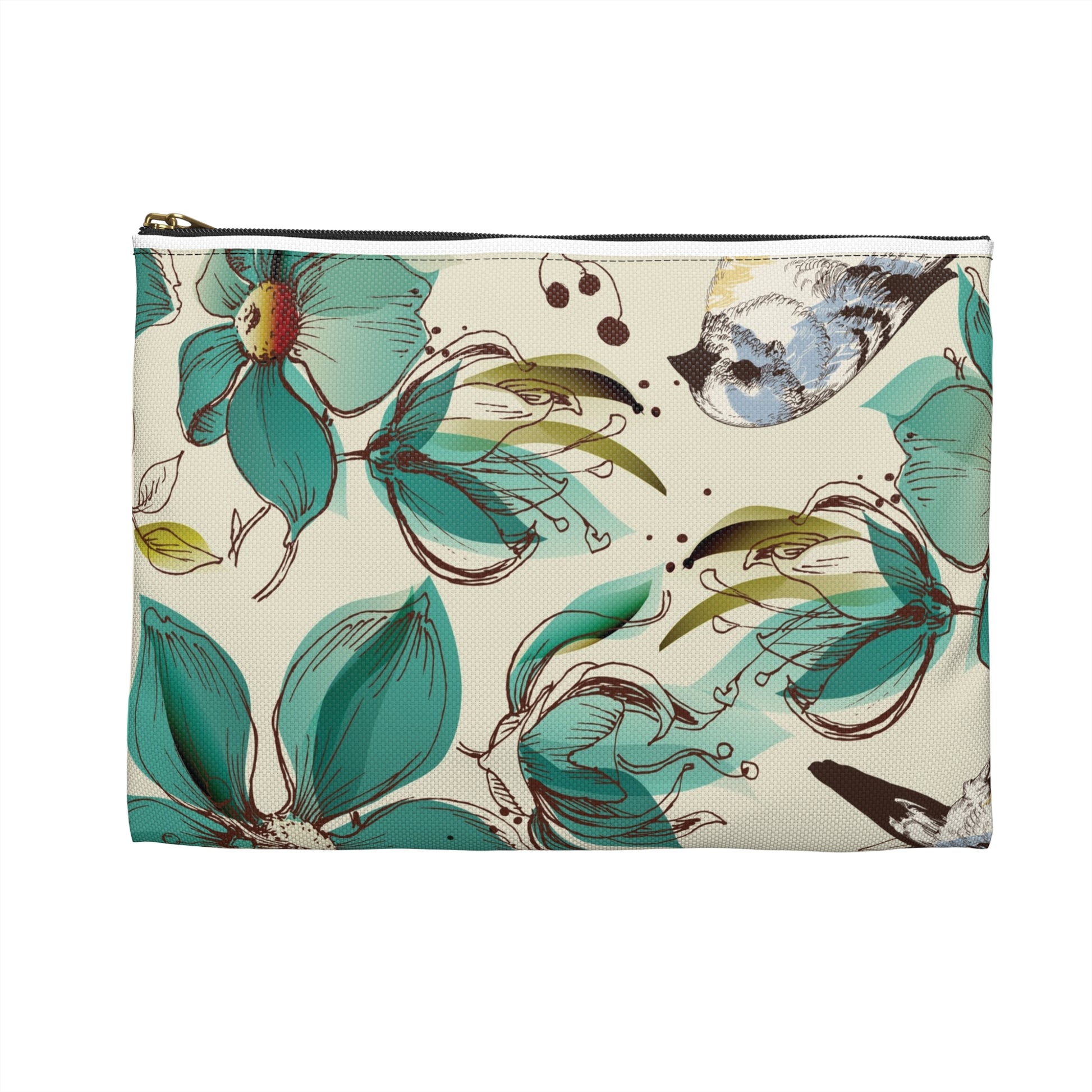 Floral Bird Accessory Pouch, Ideal for Travel, Makeup Bag, Gift for Her, Organizing Essentials, Stylish Storage