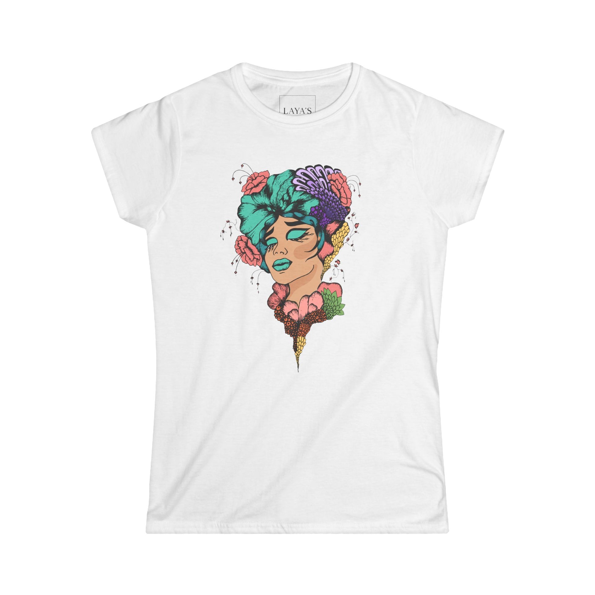The woman's softstyle tee is a more feminine take on the classic tee. The sleeves are shortened to reveal some shoulder. The fabric is 100% ringspun cotton for all solid colors. The shoulders are taped with twill to prolong durability. The collar seam is reinforced with ribbed knitting.